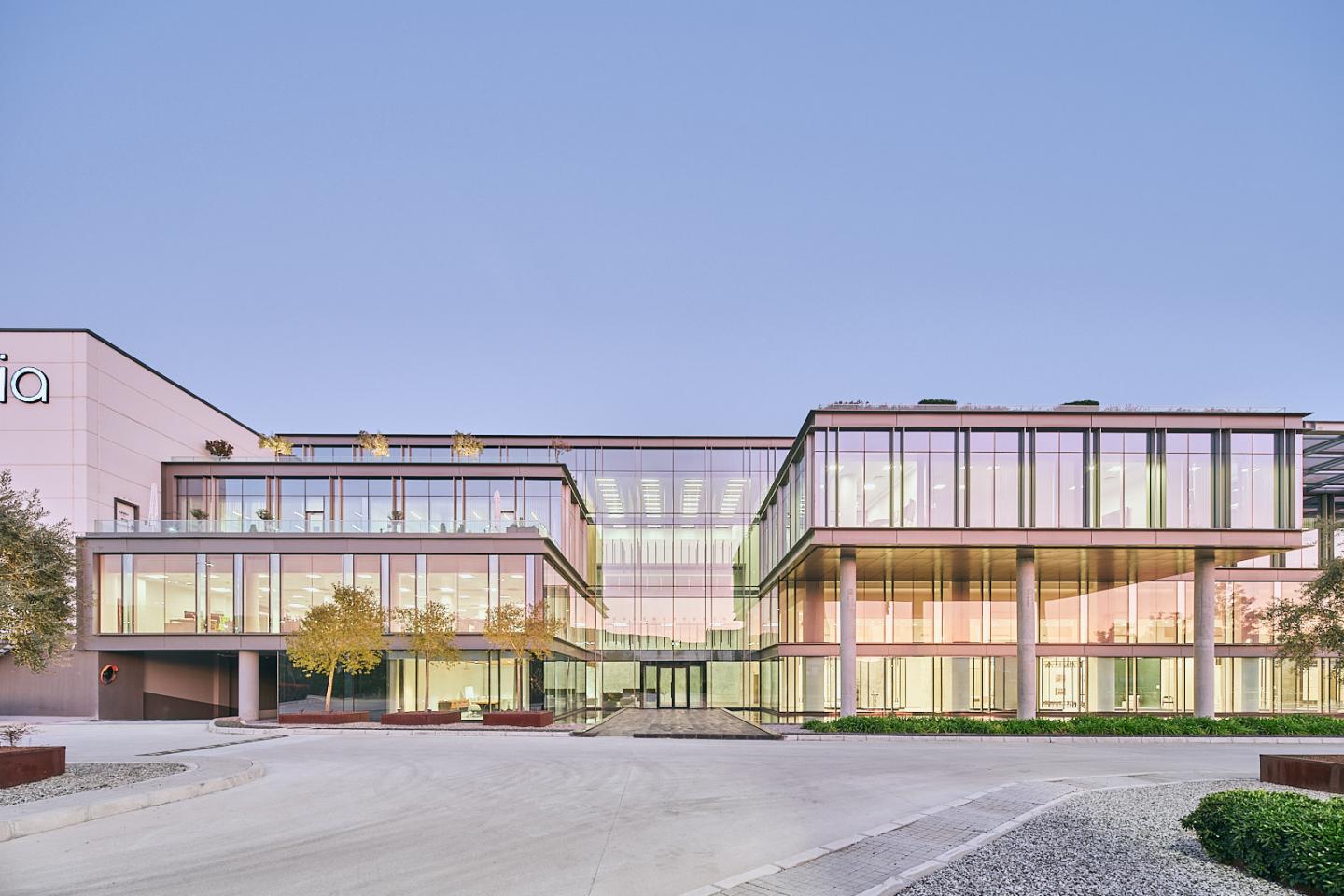 On the 1st floor a cafe/restaurant serves to the office part with its open terraces.