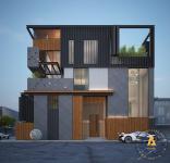 The architectural design of this residential facade embodies a visionary approach that transcends conventional norms. Modern aesthetics and cubism become essential components and the use of metal, glass, and concrete, and the rhythmic arrangement of louvres emulates the hallmarks of modern architecture. The cubist influence is evident in the protruding masses, which create a sense of depth and dimensionality. The use of geometric shapes and straight lines reinforces the modern aesthetic of the facade, while the combination of materials adds texture and visual interest.