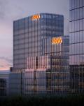 The towers are externally connected by a crescent-shaped volume, while the inner center is connected with a peripheral courtyard and corridor. The dense and precise arrangement maximises the landscape view and conveys an open, powerful portal image, forming a corporate display business card.