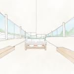 The importance of using natural shapes , almost a superposition of leaves , that all together are generating an interesting space opening up to the very unique views