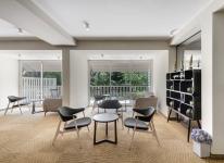 In the second building, Rozen designed the spa complex in the shape of the letter "R," facing the ancient eucalyptus forest. The original infrastructure ceiling in the hotel's lobby, which had been concealed for decades by a very low decorative ceiling, was revealed. The ceiling is made of exposed concrete structures with geometric shapes that are not directly related to the outline of the entrance floor. The concrete beams "meander" diagonally, creating fascinating field sections. By combining new wooden ceilings with Nordic touches, a unique and extraordinary appearance is achieved, blending the old with the new.