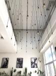 On the backside and upper floor, we find the spaces dedicated to the wedding and catering area that still follows the same design principle but on a bigger scale, in fact, the main staircase that guides you towards the main wedding hall welcomes the user with a big series of windows that works as a frame for a green external wall, a monolith once again, to the importance of preserving our green areas.