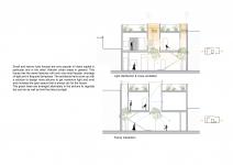 The architects would like to bring solutions for tube houses: saving electrical energy (lights, fans, air condition...) and limiting the impact to the environment. We use locally available raw materials and do handmade which cost savings to bring a sustainable project. Therefore, bare brick, bare concrete, grinding stone, natural oak combined with iron stairs are the main materials used for the project with the desire to create rusticity and have a connection to nature.