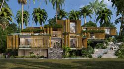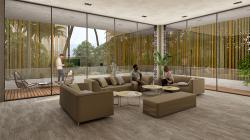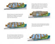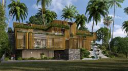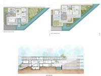The house is planned as 3 non intersecting floor plates that are set along the existing contours to marginalize cutting of the hill strata. Thus each of the floors has a large terrace which infact is the roof for the floor below. The only section that connects the whole house together is the lift lobby forming 2 separate double height lobbies at the entrance level and the family room level. The lower levels are gatherings and entertainment with large living room and dining room connected visually through the swimming pool apart from a kitchen and personal gym. The top two storeyes are the private quarters of the family with a mini theatre and 6 luxurious bedroom each overlooking the sea. Each of the connecting terraces are pocket gardens for the individual bedrooms