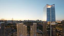 The 250m super high-rise tower marks the highest point and urban icon within the district. The tower drew inspiration from the poetic Wuhan and authentic cultural symbol – having cranes flying in the clouds around towers. The slightly curved linear architectural form features a Chinese cornice-like crown on top, and a horizontal metal void in the middle of the façade. Glittering in the night, the crown mimics the energetic crane flying above the golden cloud. The building is cut asymmetrically and creates an interior collaborative space in the middle facing the park. Designed with simplicity and aesthetics, the tower also adopts efficient interior ventilation to ensure a comfortable environment.