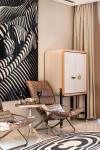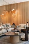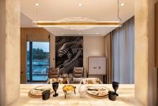 In the evenings, the Serene Solstice transforms into a realm of enchantment as the city lights twinkle like stars below, and the moon's gentle glow casts a silver aura over the apartment. With the touch of a button, the lighting adapts to the night's mood, imbuing the space with a sense of romance and intimacy.
