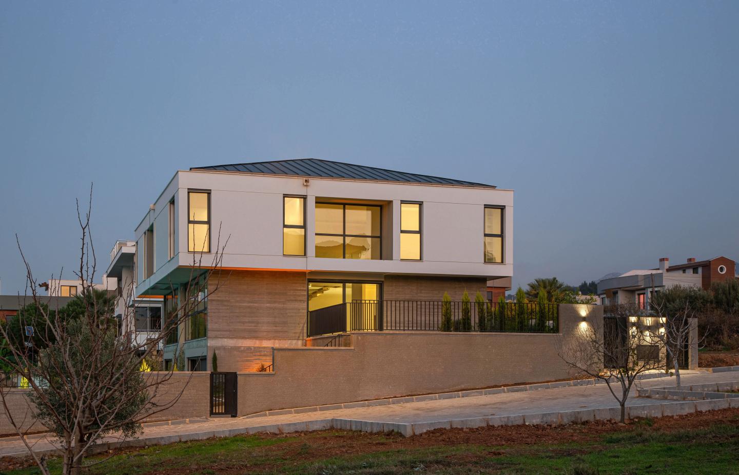 The Güzelbahçe "Twinhouse" project is located on a parcel island that has a particular building characteristic.