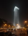 Derived from Chinese knots, the tower has a simple linear façade with slightly tilted panels on the upper half of the tower, which outlines an abstract knot-like architectural form and creates a unique urban fabric.