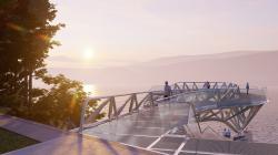 The cantilever structural-spatial parametric design of the viewing platform is formed from integrated horizontal and vertical spatial frames made of steel elements, profiles, and pipes. The design solution allows the steel frame to be divided into seven assembly segments and fabricated on slipways in the factory, ensuring the quality of parts manufacturing and quick prefabricated assembly at the construction site. The floor grating, tubular handrail, and glass railing fasteners are made of aluminum and assembled to the steel frame on site.