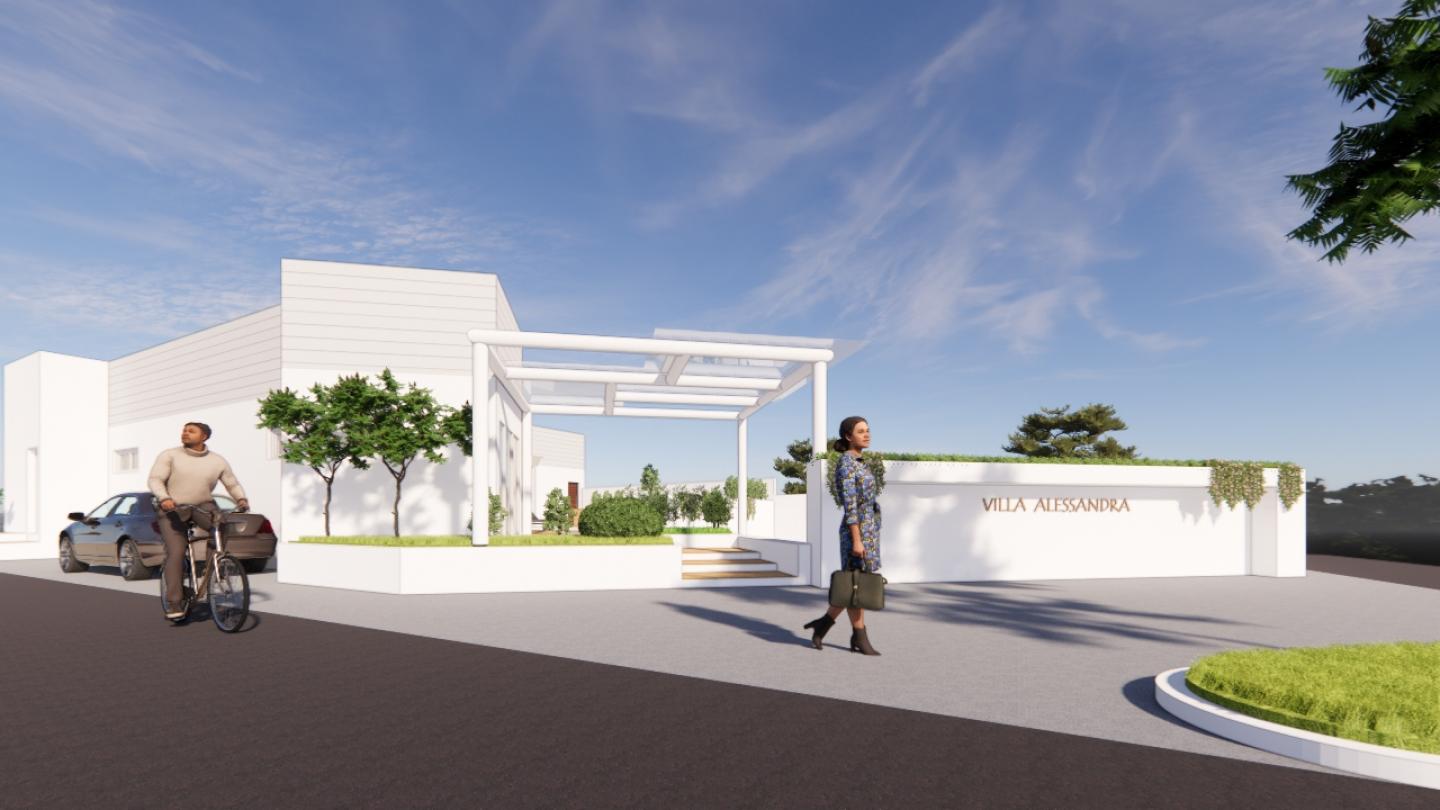 The design of this one-story 2-bedroom villa with a pool and activity area with lush greenery is inspired by the environment. To achieve this, the design will incorporate sustainable and eco-friendly elements such as natural light and ventilation, which will help reduce energy consumption. Large windows will also be incorporated to allow natural light into the living spaces while providing views of the surrounding greenery. A large sliding door will connect the living room to the pool area, creating an open and airy space that is perfect for relaxation and entertainment. A covered patio will also be included in the activity area to provide shade from the sun while enjoying outdoor activities. Finally, ample parking space will be provided to accommodate guests.