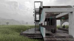 The wanderer is placed opposite the farmer. Nefaar is a refuge for the farmer to rest for a few hours and resume her agricultural work, as well as a storehouse for her equipment. But our belvedere provides a possibility to think and observe. A kind of architecture of silence.