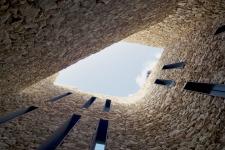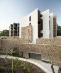 This is a hotel on the sea front. A hollow is excavated, stone retaining walls are constructed to support the wings of a hotel that wants to be part of a forest because it knows that climbing a tree is the only way to get a view over the sea.