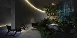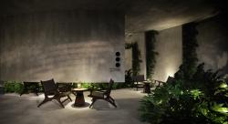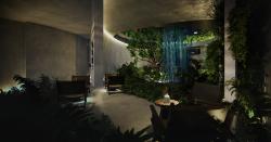 This apartment complex is developed around botanical core above with the idea of a garden house - a front yard is a buffer zone connecting the house to the central natural space. From here, residents can see the garden, the privacy is enhanced with layered green solutions. This idea breaks away the sense of accessibility of traditional apartments, bringing the concept that humans are only a part of this ecological circle - the great meaning of biological architecture. The approach to this building is clearly separated from traffic functions with soft and unique paths that were created by layers of greenery. Spatial areas are connected and demarcated to each other through large curved concrete walls and diverse vegetation. The uniqueness of this space is exploited for the F&B service experience.