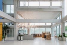 SQUARE is the learning centre of the University of St. Gallen in Switzerland. Designed by Sou Fujimoto Architects, the building is based on the concept of unbroken connectivity and multifunctionality and models new ways of learning and interaction between students, lecturers and general public. Architecture studio Evolution Design was commissioned to develop an interior concept that enables experimental learning and teaching and to fit out the building and several roof terraces.
