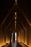 The space is left to the viewer to explore the beauty through the art of architecture. The interior of the structure that resembles a church is gradually mirrored by dispersed light beams that pass through gaps and fall inside. This will give people a sense of silent ritual as they walk through it.