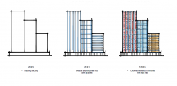 Despite their deferring massing, the design language stays consistent across the 2 plots. Panoma 2 sits as a single tower while Panoma 1 notably stands as a massing of 3 towers of staggered heights. The building retains the same vertical and horizontal rib motifs with each “tower” section adorned with differently coloured rib elements to create visual demarcations between sections. The staggered heights of the massing create more communal spaces on the rooftops of each section and maximise views for residents in the building.