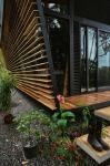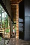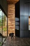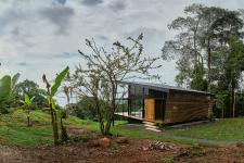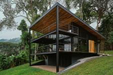 The Black House is located along the southern Pacific coast of Costa Rica. It has been developed as a new prototype for the modular No Footprint House series (NFH). The climate-responsive design of the NFH variations is based on passive strategies such as site-specific positioning and the use of natural resources for cross ventilation, solar shading and energy production, as well as rainwater harvesting and biological water filtration. Industrial building techniques and prefabricated components are used to create a high level of efficiency that can be delivered to any target location. Since the creation of the multi-award winning first prototype of the NFH, we developed new building typologies and alternative construction materials to continuously improve the overall project performance, lower its environmental impact while stimulating local and circular economies. The different sizes and configurations of the individual building typologies cater for a broad customer segment. Multiple options for the building structure, finishes and furniture components allow for an optimized relationship of product and budget, based on a catalogue of pre-selected elements for sustainable construction ("kit of parts"). The Black House is built as a steel frame with wooden components for exterior and interior surfaces, as well as the integrated furniture pieces. All timber components are made from laminated and certified teak wood that is sustainably produced and processed in Costa Rica. In terms of the specific modular layout of this building, a studio typology was designed for a couple to live and work in one compact unit. Operable facade elements allow for the interior spaces of the house to open up towards their surrounding natural habitat, resulting in a symbiotic relationship among nature and the built environment.