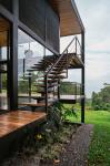 The Black House is designed as a steel structure of three different levels that are carefully situated with regards to the topography of its target location. A multifunctional storage and work space is partially built into the hillside, topped by a main level and viewing platform above. The main level is composed of 4 modular quadrants of 4x4m each, with a 1m corridor to 3 sides and a 4-meter-deep view terrace towards the sea. This level measures about 130 square meters in total. The roofed balconies above and below the main level measure 40 square meters each, the storage and work space accounts for an additional 32 square meters. Overall, the Black House provides 242 square meters of usable area. It was built for a total cost of 220.000 US Dollars, including all of the interior finishes and furniture pieces. Water and energy for the building is provided by renewable resources. The bioclimatic architectural design provides natural shading and ventilation on the base of the local site characteristics and tropical climate. The project seeks for integral sustainability in terms of its social, economic and environmental performance.