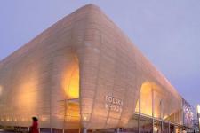 The Polish Pavilion is designed as a metaphorical space, subordinated to the leitmotif of the Polish presentation: “Notice the Beauty,” focusing on Frederic Chopin and the Salt Mine in Wieliczka near Krakow. The elements that create this space include an experimental wicker elevation and a symbolic cross-section through Poland placed inside. The section unfurls from the Baltic Sea up north to the mountain tops down south, with the 14th c. Wieliczka underground salt mine chamber located underneath. The amphitheatrically formed space above the ‘section’ is dedicated to multimedia presentations regarding nature and culture of Poland. The elevation of the pavilion is defined through prototype technology based on a modular system of bi-directionally bent steel frames, woven around with white wicker, a type of willow {Salix sp.}, widely associated with Chopin {compare F. Chopin’s monument in Lazienki Park, Warsaw}. This material is a reference to Mazovian landscape, the environment of Chopin’s music. The high-tech, computer generated shape of the elevation creates also a symbolic image of contemporary Poland, a country of fast technological development yet carefully cultivating its history, music, art and crafts - the white wicker mesh is made in a low-tech manner by numerous Polish artisans from villages near Rudnik. The main materials used in pavilion were produced in a pro-ecological, low energy consumption process and will be utilized after the exhibition.
