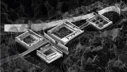 The wall is the fundamental structural element of the project, composed of reinforced concrete. The wall represents the preexistence, the origin of the composition of memory. The vestiges found on the site are weathered concrete walls that have taken on different forms of life, revealing the traces of what happened in that place. Therefore, the project is built upon walls that express boundaries, that thin line that thickens, fragments, and perforates. This element shapes the facade of each of the tanks that make up the aqueduct system. Reinforced concrete allows the perforations made to be structural, so the parametric configuration of the pattern of perforations never hinders its load-bearing capacity. Additionally, these perforations have different arrangements and inclinations that not only align with the activities of each space but also enable lighting events on special dates. Furthermore, in order to give prominence to the vestiges, the new walls feature a slight setback at ground level, creating a visual effect of separating from the ground to frame the preexistences. It is expected that, over time, these walls will wear down, and their perforations will function as habitats for different forms of life, thereby creating a dichotomy between the urban and the natural. This will allow light, its reflection in the water, wind, and the shadows generated by the configuration of the facade to constantly change the project's experience. Additionally, the interior spaces have metal beams of varying sections that are anchored to the walls to provide structural support for the floors and allow for open and flexible spaces for various spatial configurations.