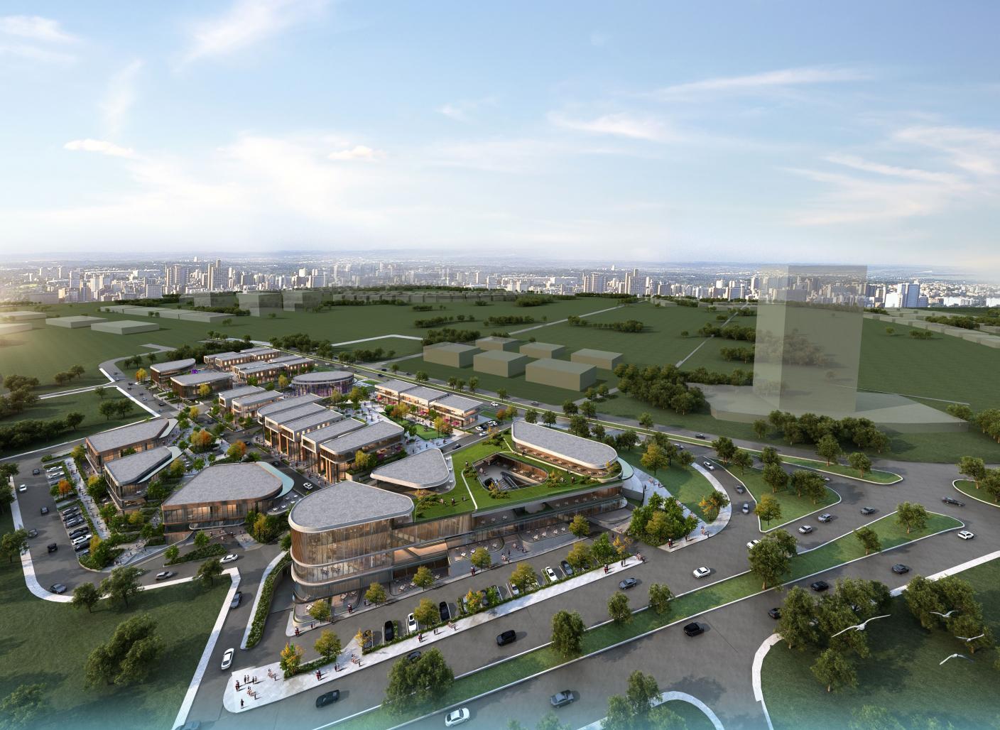 The mixed-use commercial project includes an open shopping mall, a performance centre, arcades and small-scale commercial buildings located around the main axis. Since the project scale covers 6 parcels and has a total land area of 38011,07 m², it is a structuring project that will contribute to the city scale.