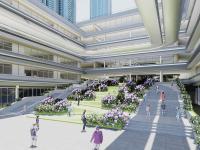 The design adopts a people-centric approach that includes a series of energy-efficient measures to encounter the subtropical climate characteristics. High performance glazing glasses and external shadings are used to reduce the heat gain, whilst photovoltaic canopies are designed to provide solar power to reusable energy for the campus. With the porous design of the building base, the design provides cross natural ventilation, as well as optimises the air quality and reducing the risks of infectious diseases.