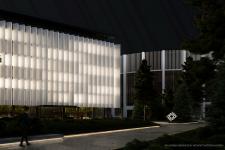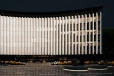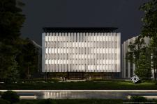 The architecture of the building's façade, designed on the principle of lamella shutters scaled to the size of the colonnade, creating both visibility and privacy, is also a consequence of this idea. This solution also allowed the ZEN GARDEN building to be organically integrated into the square near the Yubileyny Concert Complex, echoing the white colonnade of its rotunda and creating a complete architectural ensemble of the square.