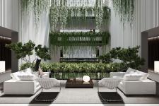 The idea of an oasis or hidden garden formed the general layout of the ZEN GARDEN building, the core of which is a green atrium with hanging balcony gardens with tropical plants, uniting the lounge areas with terraces with panoramic views of the historical center of St. Petersburg on the roof of the complex, ultra-modern residences and penthouses, boutique hotel space, public areas with haute cuisine restaurants located in the lobby, a 1500 m² fitness and spa center with a 25-meter swimming pool, and a parking area.
