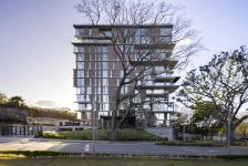 We were given the task of creating an apartment building for 13 completely different apartments in a very beautiful site inside a mother project named Avenida Escazú. A very pedestrian friendly mix used project. this special site, is between a river and a park. The site in front of the park is full of old trees with beautiful heights. We designed the building in between the trees, having one specifically, so closed to the balconies that you are able to touch the leaves.