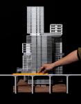 Rising from a terraced and landscaped podium, a cluster of residential and office towers are linked with a continuous loop of public functions. Museums, performance spaces, and retail create a civic space unlike any other in Miami. This "collaborative core" adds value to the neighborhood and acknowledges the shift in the center of gravity of cultural institutions from Miami Beach to the city. The development also integrates directly with existing transit systems including the Metrorail, and it anticipates the development of a new Bus Rapid Transit (BRT) route extending to the west along Flagler Street.