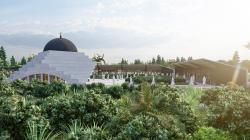 When we look at the development of Renaissance and Islamic art, in the Renaissance, there was the ability to draw and describe what existed in the best and most aesthetic way on the rules of perspective, while a completely abstract understanding of aesthetics developed in Islamic art. Non-figurative abstract art, which does not allow human perspective in Islamic art, was the main reference point when designing this project. The architectural language established with geometric shapes was defined in a way that would strengthen the existence of the single-domed mosque structure. The single-domed mosque structure is defined by a geometry that descends in steps towards the ground from 3 corners. On the entrance front, the building becomes different by opening up for users.