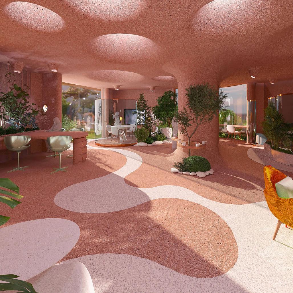 inspiration from natural forms. To create a living space that was more natural in its essence, the bubbly