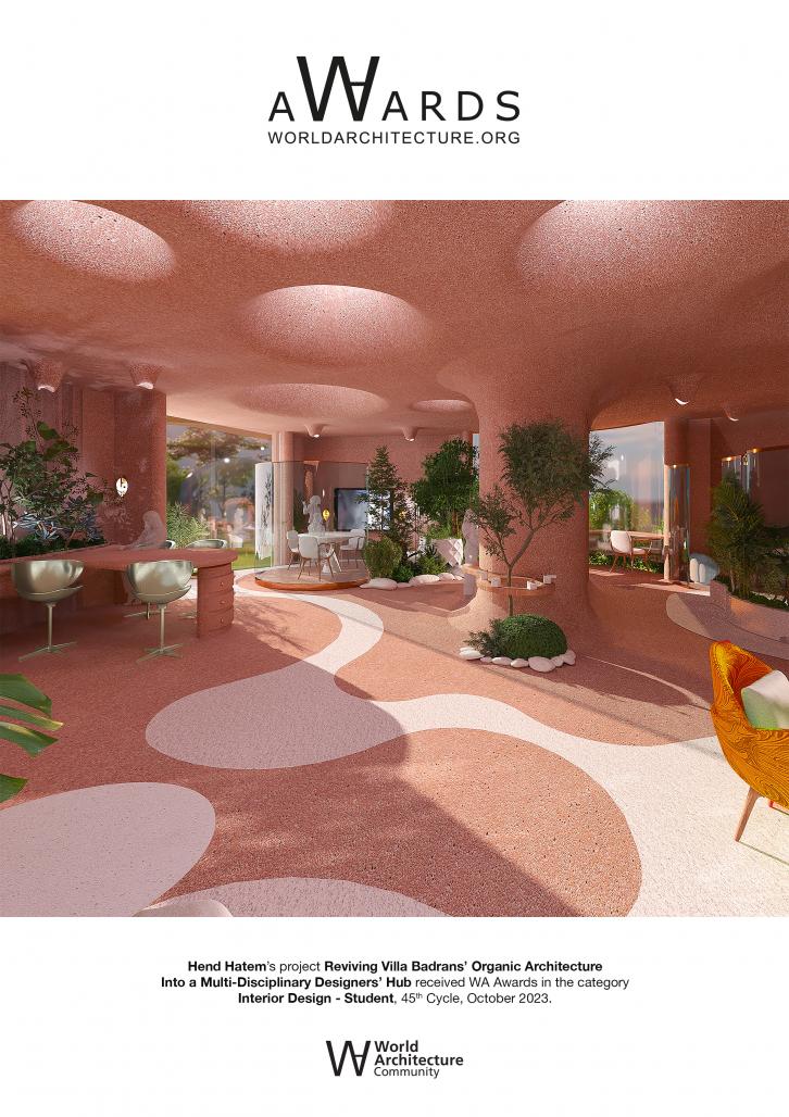 Reviving Villa Badrans’ Organic Architecture Into a Multi-Disciplinary Designers’ Hub by Hend Hatem in Egypt won the WA Award Cycle 45. Please find below the WA Award poster for this project.