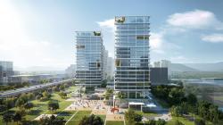 Outlined by a dynamic skyline and a vibrant cityscape, the development is set to be an urban oasis that optimises the space by integrating the mixed-use buildings and diverse park. To maximise the spatial planning of the narrow site, the design creates an open street to provide a flexible and collaborative space. In the southernmost, two 100m-tall twin towers shape a gateway for the industry in the city.