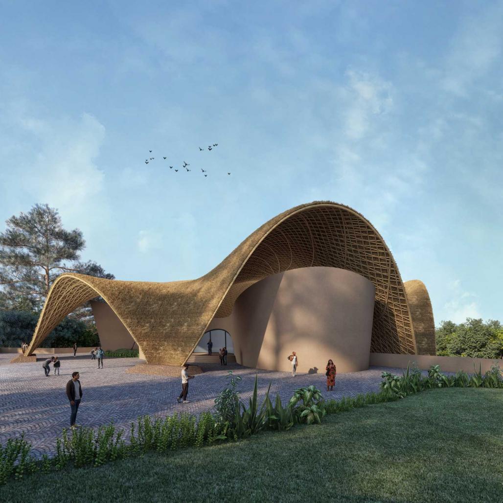 The design facilitates natural cross ventilation with the arched bamboo roof & indirect light penetration within its spaces orienting all the inner spaces towards the north. The sun is always in the southern hemisphere in this location with temperatures in excess of 35°C for most of the year. The design is contextual to the location in terms of being climate responsive & the materials that are proposed to be sued, creating spaces for the community of the small town, Buldhana.