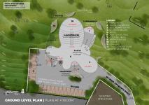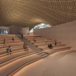 Nestled in the contours the amphitheatre steps down along the natural contours flanked by an elevated viewing deck overlooking hills on the northern side . The undulating walls are proposed to be built in organic vedic bricks with a natural lime plaster coating called “araish” which the villagers in the area have used since many decades due to its heat reducing properties.