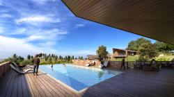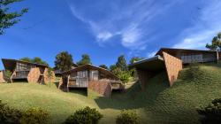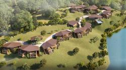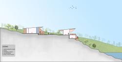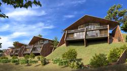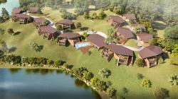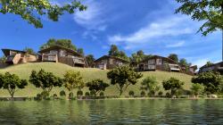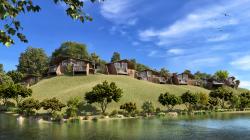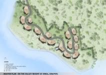 Situated on a steeply contoured hillside overlooking a lake, this 45 room resort is designed in small 2 level modules along the hill slopes. Proposed to be built in locally sourced sandstone with light weight metal frame & recycled wood roofs, each room opens into large cantilevered decks towards the lake and the surrounding hills.