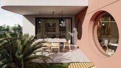 The layout of the spaces in the residence, located in a tranquil area of Çeşme, was designed around a wall that divides the structure in a north-south direction, taking into consideration sun analyses. The kitchen terrace on the west side of the wall provides comfortable use in the morning hours, while the living room terrace on the east side is protected from the harsh afternoon sun of Çeşme, thanks to the wall. These terraces seamlessly integrate with the garden and an inviting swimming pool, creating a serene relaxation environment while establishing a fluid connection between indoor and outdoor spaces.