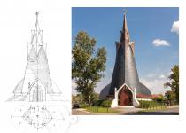 In the spring of 2011, Member of Parliament Gyula Földesi and Pastor János Börzsönyi visited Imre Makovecz. The preparatory design phase began, and after a site visit, the Master produced sketches. He entrusted one of his students and colleagues, Tamás Dósa-Papp, with continuing the work. The master did not live to see the design assignment following the regulatory plan and the site development. The plans were prepared by the architect Tamás Dósa-Papp using Imre Makovecz's sketches created in the spring of 2011.