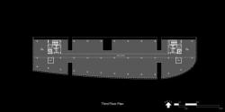 The plan of the building is bowed, gently curved, and moves out towards the south becoming slightly larger on the upper floors.