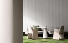 Centered around a circular project exhibition area, the first floor seamlessly connects the entire leisure and negotiation space, including LALUNA, the proprietary coffee brand of the Yuesheng Group. Outdoor corridors merge the lake view with the interior, shielding the urban clamor and anxieties. Whether it's sales negotiations or daily relaxation, Yanyuan offers a moment to savor a cup of coffee.