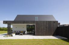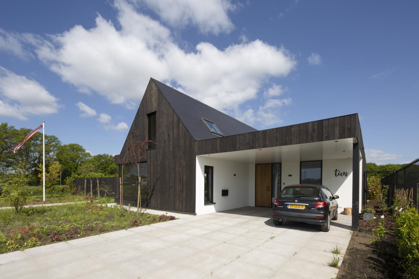 This remarkable sustainable home is equipped with biobased insulation and a wooden facade finished with fungus paint. The home's understated design and dark facade and roof make it not only aesthetically appealing but also invisibly energy-neutral.