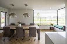 In addition to the sustainable facade, the house is entirely energy-neutral. Thanks to advanced technologies in energy efficiency and a clever sun-oriented design, the home generates more energy as it consumes. It incorporates solar panels, a heat pump, adjustable sunshades, and high insulation values to minimize energy consumption. This not only results in lower energy costs for the residents but also leads to a significant reduction in CO2 emissions throughout the lifespan of the house.