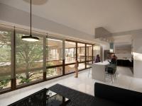 On the ground floor, apart from the parking space, store and facilities, a Suite was considered for family’s guest. The first floor, which belongs to the father of the family, has full access to the central courtyard and it is possible to plant trees and grow various plants in it.