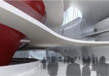 It will allow congress and concert participants to see the city from the multi-functional foyer and be very well seen at the same time. Foyer will be visible together with the “fifth elevation” of the building from the Wawel terrace. The view will cover the building together with the nearby building of The Manggha Museum with which architectural form corresponds well.