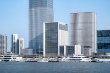 Pudong district has been an incubator for international enterprise headquarters since Expo 2010 Shanghai. Aedas Global Design Principal Ken Wai and Executive Director Fei Li Shen joint venture with Tongji Architectural Group, designing a green office that sits along the Huangpu River and Expo Avenue.