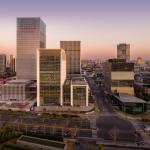 The twin towers have different heights and connect each other through a public lobby space. The façade uses vertical lines defined by a pure and minimalistic expression of granite and glass of various apertures. ‘The towers have created a unique urban fabric, outlined by a neat and simple architectural form and embraced a 6-storey tall conical lobby on a slanted site.’ Fei Li said. The stepping mass responds with the surroundings, creating a vibrant gateway to the financial district.