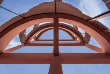 The outward-curving arc shape on the facade continues the form language of the inner curved beams, establishing a new exterior facade combination while creating diverse reading scenarios indoors. Based on this shape, the window system becomes more private, and the slender skylight at the top of the outward-curving arc offers another way to connect windows with nature: looking up at the sky, feeling the poetic movement of light and clouds.