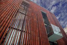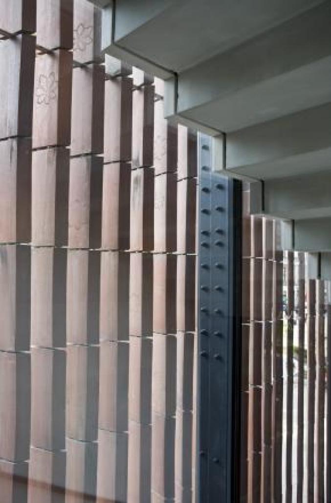 The bricks changed their traditional horizontal layout into a vertical one, and were mounted on steel rods that ran through a specially elongated opening in each and every brick. Thus a kind of external moveable curtain should be created, a kind of louvers built of brick “beads”. We designed an external brick plane that can be opened and closed according to one’s needs as the position of every brick might be individually regulated. Having such a system at our disposal and moreover having a full range of colours typical for mediaeval bricks {from deep violet to orange} we are able to build our structure from a material that is both characteristic and intelligible within the historical context. It builds a metaphor of a contemporary moment that remains closely related to history – of contemporary architecture that results from the reinterpretation of a traditional language of architecture.