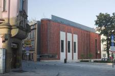 The building fills a gap in the medieval historic urban fabric of Krakow. The gap results from a demolition {in 1939} of a townhouse called “Pod Lipka” {“Under the Little Lime Tree”}, situated at the corner of Grodzka Street and Wszystkich Swietych Square. It is an exceptionally exposed location right by the stretch of the “Royal Way” between the Main Market Square and the Royal Castle of Wawel. Thus it is at the very heart of an urban layout that dates back to the city’s location in the mid-13th century, and it is surrounded by historic monuments from all epochs. The spirit of Stanislaw Wyspianski soars above all these places; his stained glass and wall paintings are to be found in the nearby Franciscan church and in the Basilica of St. Mary. Therefore the main design task was to define an appropriate composition of function and form and to define the adequate level of reference to the historic surroundings.